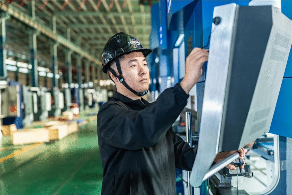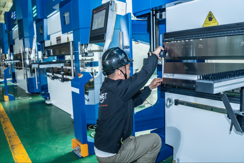 Yes. All Machnist press brakes comply with international standards such as CE and ISO. The machines are equipped with multiple safety devices, including light curtains (photoelectric protection) and emergency stop circuits, to protect operators.